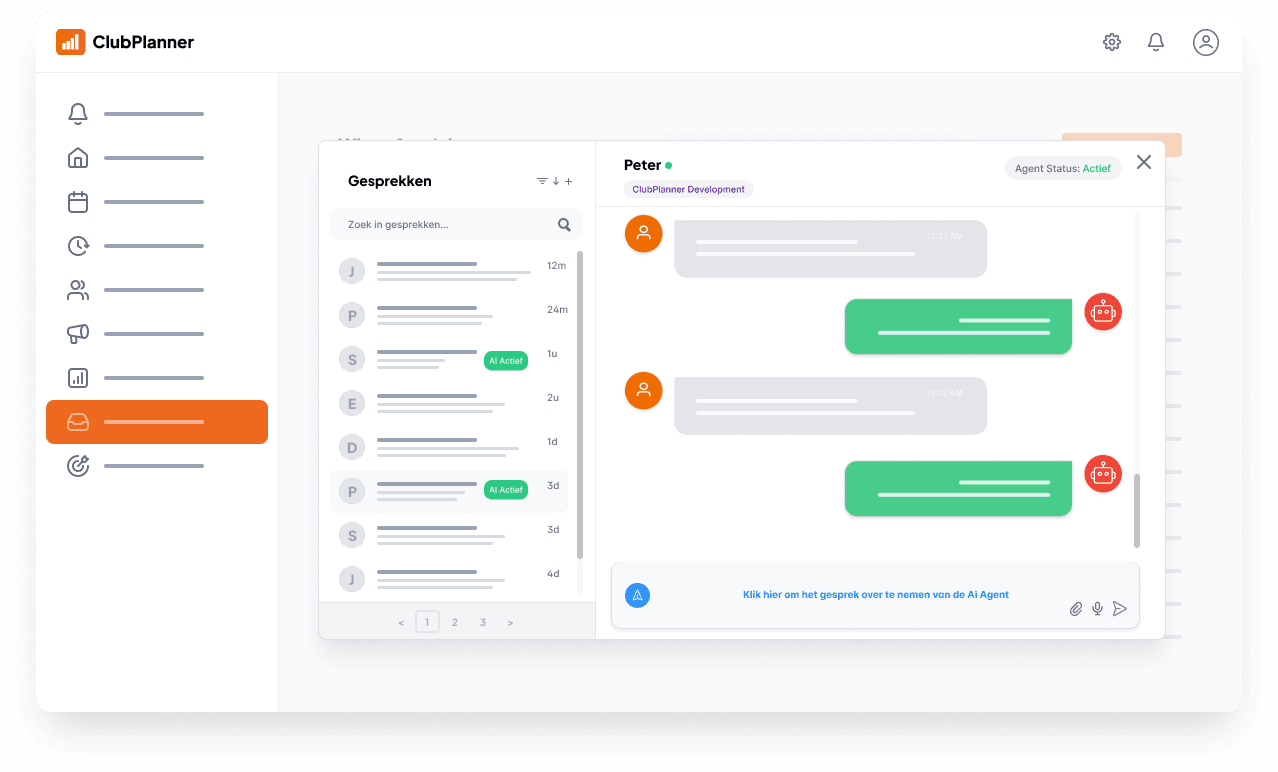 Verhoog retentie, converteer meer leads en bied persoonlijke aandacht, zonder extra personeel. ClubPlanner’s AI Agents draaien 24/7 en integreren naadloos in je processen.