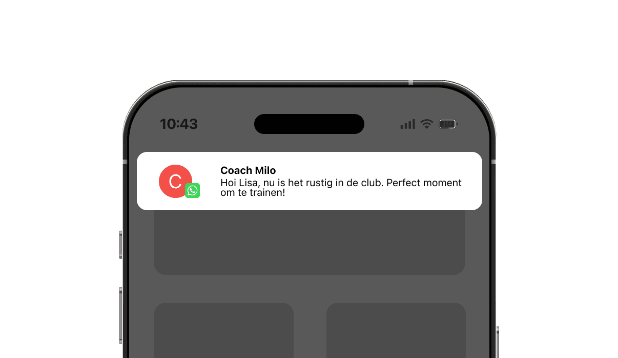 Zet de Retentie Coach in om de loyaliteit van jouw leden te verhogen. Is jouw lid een week niet wezen sporten? De Retentie Coach vraagt via WhatsApp of deze weer eens komt sporten en plant direct een groepsles in.