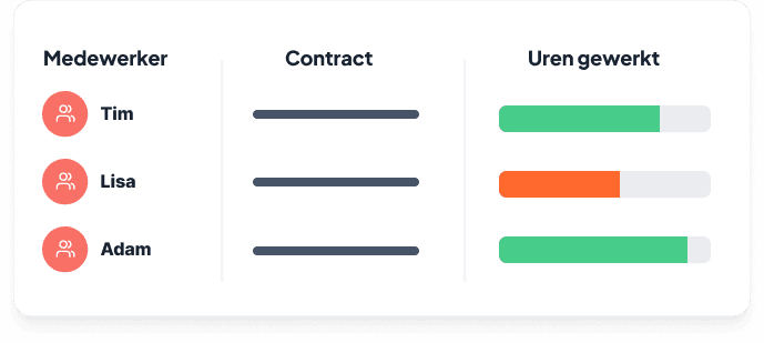 Registreer automatisch gewerkte uren, overuren en verlof. Verlaag structureel je loonkosten met meer grip op inzet en overschrijdingen.