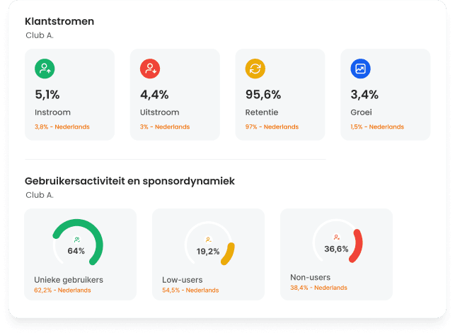 Meet hoe loyaal leden zijn en ontvang concrete feedback voor verbetering direct zichtbaar in overzichtelijke dashboards.